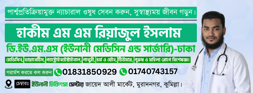 প্রাকৃতিক চিকিৎসায় সুস্থ জীবন আজই শুরু হোক, আমরা প্রাকৃতিক ও ইউনানী চিকিৎসার মাধ্যমে মানুষের ভেতরের রোগের শিকড়ে কাজ করি। অভিজ্ঞ হাকিম ও গবেষণালব্ধ ফর্মুলা ব্যবহার করে আমরা নিরাপদ ও কার্যকর উপদেশ দিয়ে থাকি, যা পার্শ্বপ্রতিক্রিয়াহীন ও ফলপ্রসূ। আপনার শরীর ও মনের জন্য প্রকৃতির নির্ভরযোগ্য চিকিৎসা পেতে আপনার পছন্দমতো পণ্য অর্ডার করুন।
